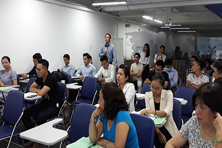 Với đôi câu dẫn hướng, kích hoạt chương trình, cô Minh đã tạo nên sự sôi động trong trao đổi, trò chuyện và đặt vấn đề, câu hỏi của người tham dự.